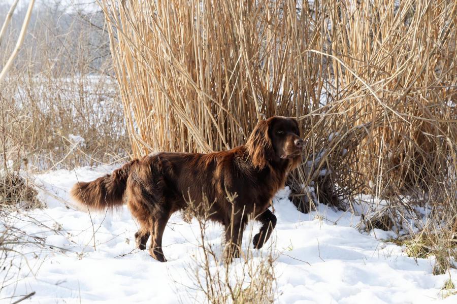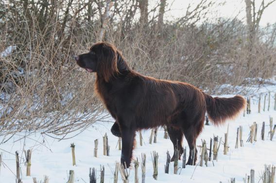 Kompakter, tiefgestellter, dem Ideal nahekommender Rüde mit sehr schönem Rüdenkopf. Flüssiger Bewegungsablauf, korrekte Winkelung der Laufknochen, sehr gute obere und untere Linie, sehr gut angesetzte und getragene Rute. Harsches Gebrauchshaar in richtiger Länge, sehr schöne Fahne.