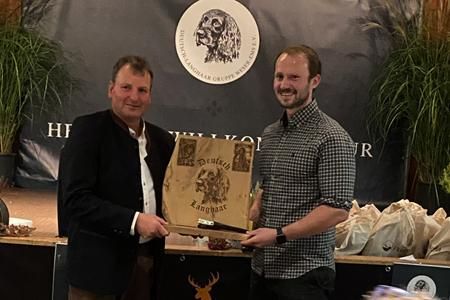 Den Ehrenpreis für das jüngste Gespann - ausgelobt von Dirk Balzer (Zwinger vom Hegemeister) - erhielt Christoph Schmittmann mit Quattleya vom Eulenspiegel.